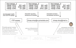- автоматическое обновление цен из рассылок поставщиков (email) / по FTP / с вебсайта / Google Drive / Yandex Docs / Cloud.Mail / из личного кабинета поставщика